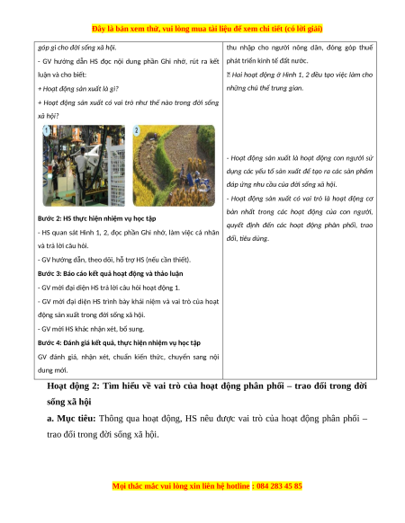 Hoạt động 2: Tìm hiểu về vai trò của hoạt động phân phối – trao đổi trong đời