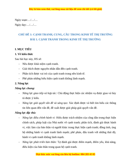 CHỦ ĐỀ 1: CẠNH TRANH, CUNG, CẦU TRONG KINH TẾ THỊ TRƯỜNG