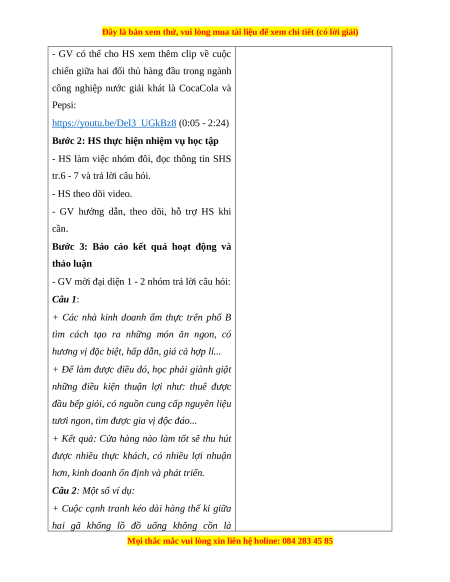 - GV hướng dẫn HS đọc thông tin mục 1 SHS tr.6 - 7, thảo luận nhóm đôi và tìm hiểu khái niệm cạnh tranh.