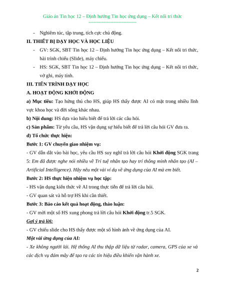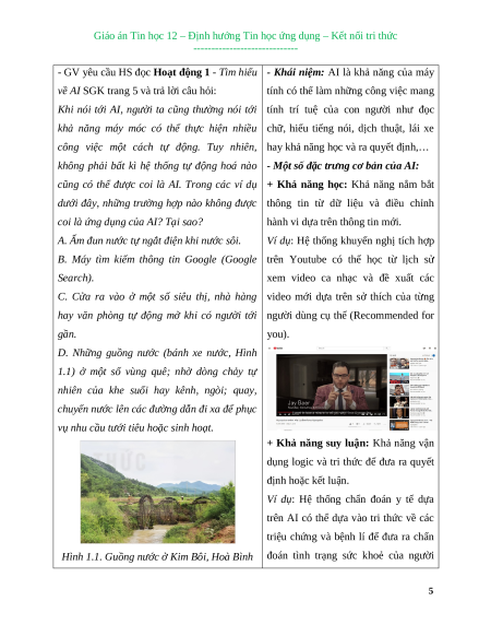 - HS vận dụng kiến thức về AI trong thực tiễn để trả lời câu hỏi.