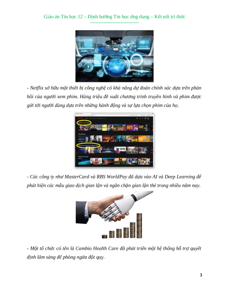 - GV chiếu slide cho HS thấy được một số hình ảnh về ứng dụng của AI.