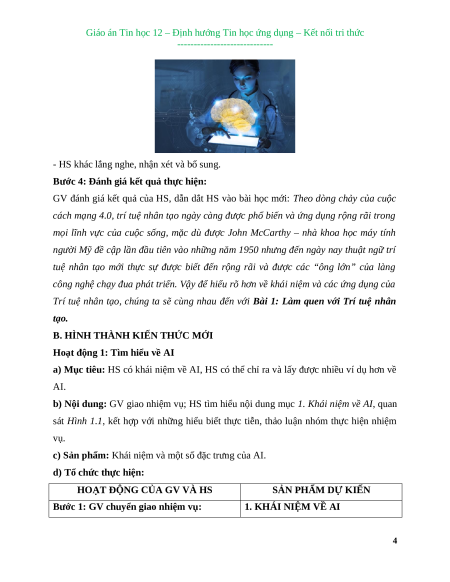 Bước 1: GV chuyển giao nhiệm vụ: 1. KHÁI NIỆM VỀ AI 4