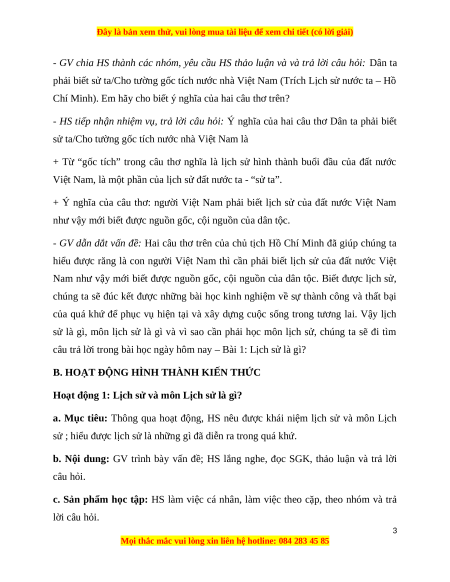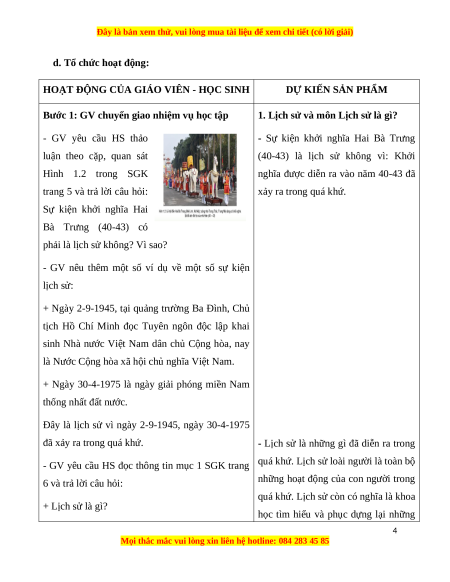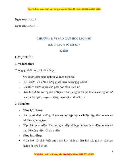 BÀI 1: LỊCH SỬ LÀ GÌ? (2 tiết) I. MỤC TIÊU 1. Về kiến thức