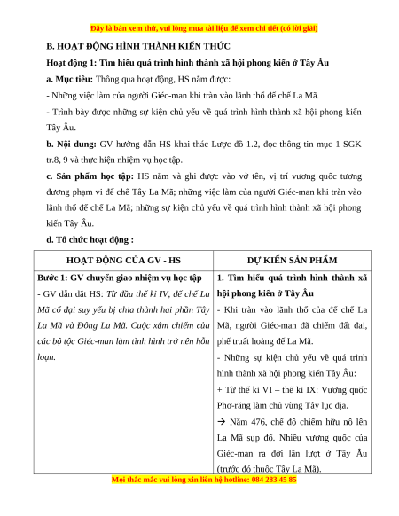 Giáo án Bài 1 Lịch sử 7 Chân trời sáng tạo: Quá trình hình thành và phát triển chế độ phong kiến ở Tây Âu (phiên bản 2)