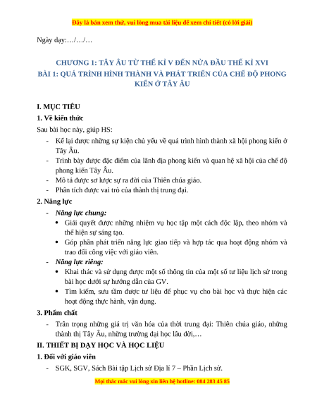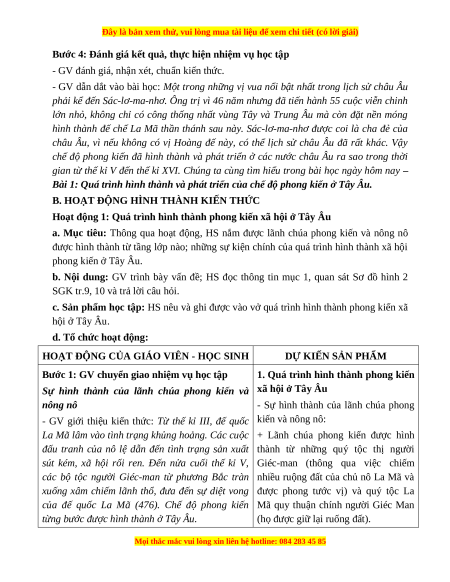 Bài 1: Quá trình hình thành và phát triển của chế độ phong kiến ở Tây Âu.