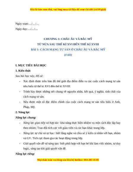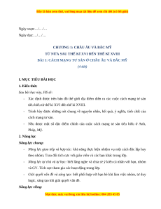 BÀI 1: CÁCH MẠNG TƯ SẢN Ở CHÂU ÂU VÀ BẮC MỸ (4 tiết)