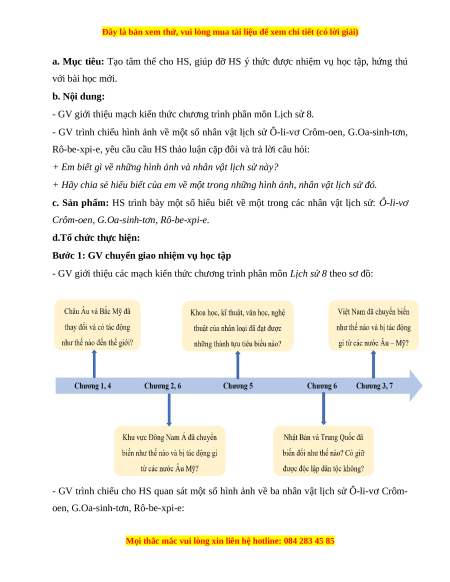 - GV giới thiệu mạch kiến thức chương trình phân môn Lịch sử 8.