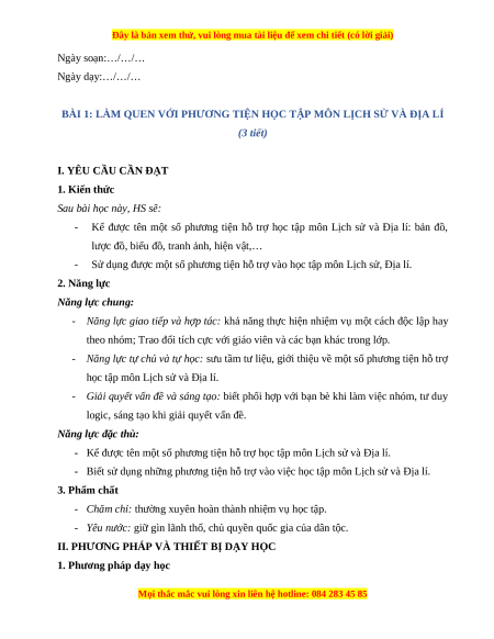 BÀI 1: LÀM QUEN VỚI PHƯƠNG TIỆN HỌC TẬP MÔN LỊCH SỬ VÀ ĐỊA LÍ (3 tiết)