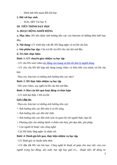 III. TIẾN TRÌNH DẠY HỌC