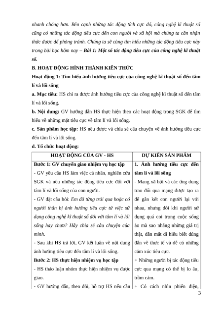 - Một số tác động tiêu cực của công nghệ kĩ thuật số đối với đời sống con người và xã hội. 2. Năng lực