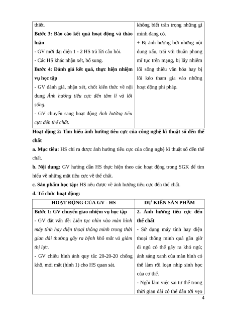 Hoạt động 2: Tìm hiểu ảnh hưởng tiêu cực của công nghệ kĩ thuật số đến thể chất