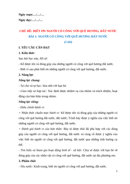 BÀI 1: NGƯỜI CÓ CÔNG VỚI QUÊ HƯƠNG ĐẤT NƯỚC (2 tiết)