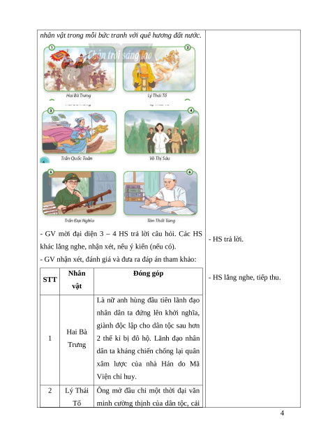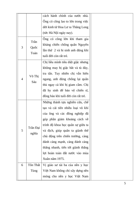 - Kể được tên và đóng góp của những người có công với quê hương đất nước.