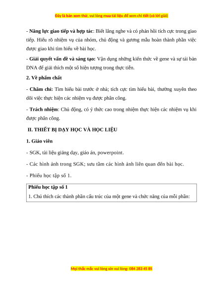 - Thực hành tách chiết được DNA. 1.2. Năng lực chung