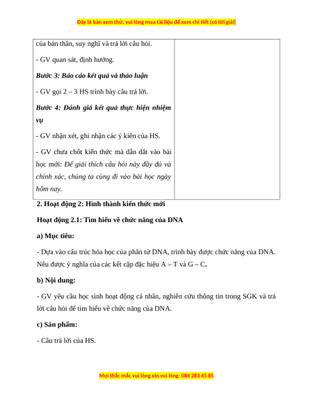 nội dung về gene và sự tái bản DNA, tự trả lời các câu hỏi ở mục Dừng lại và suy