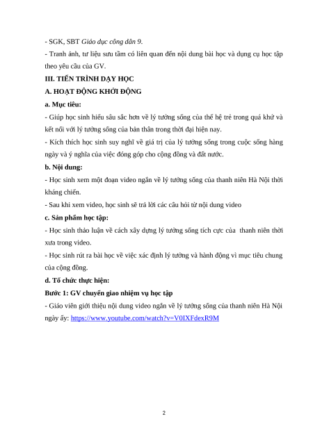- Giáo viên giới thiệu nội dung video ngắn về lý tưởng sống của thanh niên Hà Nội
