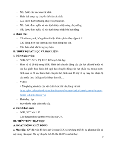 của bản thân về kiến thức đã học về cấu tạo chất, từ đó GV định hướng HS vào nội dung của bài học.