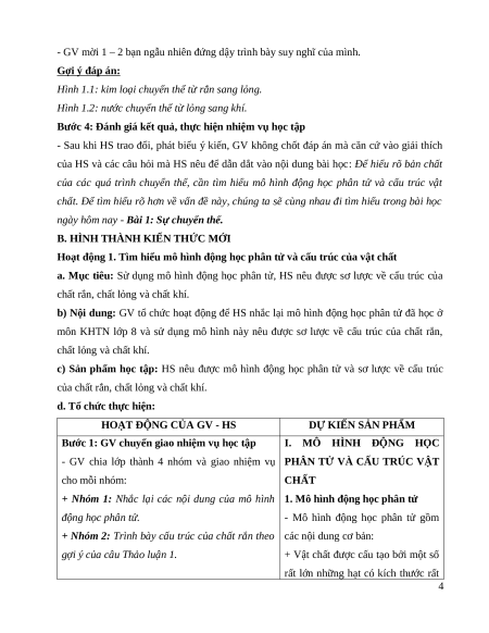 Hoạt động 1. Tìm hiểu mô hình động học phân tử và cấu trúc của vật chất