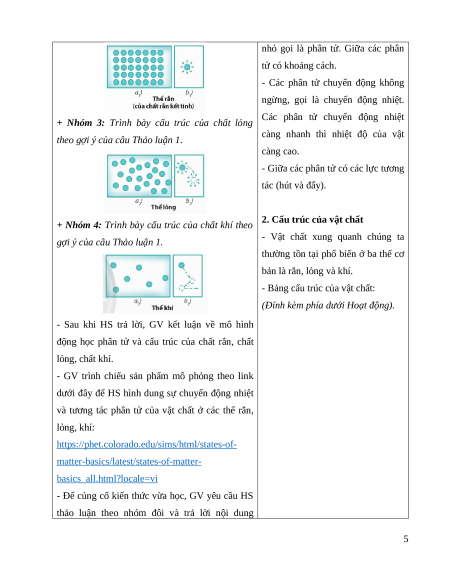 https://phet.colorado.edu/sims/html/states-of-matter-basics/latest/states-of-matter- basics_all.html?locale=vi - Phiếu học tập.