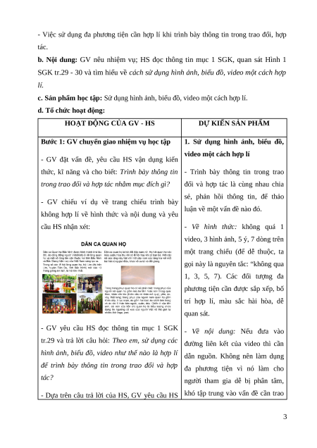 - Dựa trên câu trả lời của HS, GV yêu cầu HS khó tập trung vào vấn đề cần trao 3