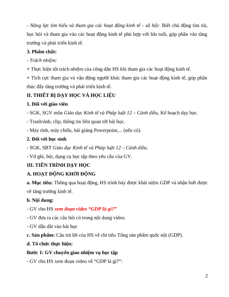 Giáo án Bài 1: Tăng trưởng và phát triển kinh tế KTPL 12 Cánh diều