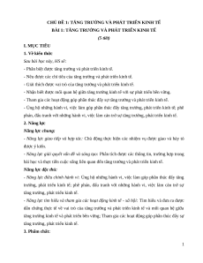 BÀI 1: TĂNG TRƯỞNG VÀ PHÁT TRIỂN KINH TẾ (5 tiết) I. MỤC TIÊU 1. Về kiến thức