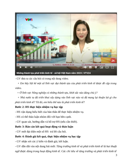 - GV cho HS xem đoạn video mang tên “Những thành tựu phát triển kinh tế - xã hội Việt Nam năm 2023”.