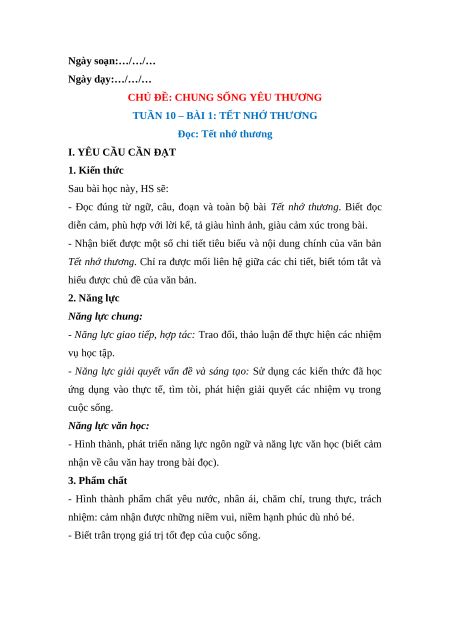 TUẦN 10 – BÀI 1: TẾT NHỚ THƯƠNG