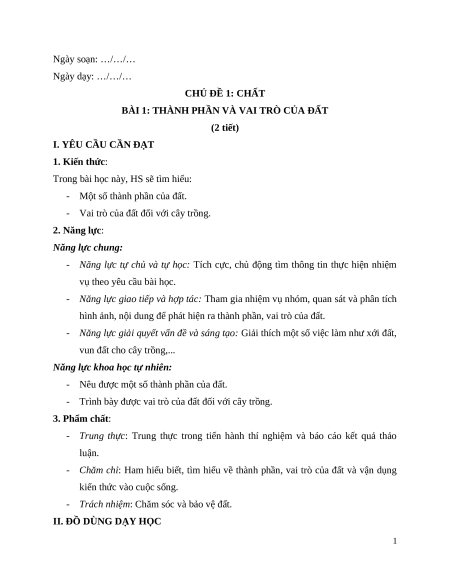 Bài 1 – Thành phần và vai trò của đất – Tiết 1.