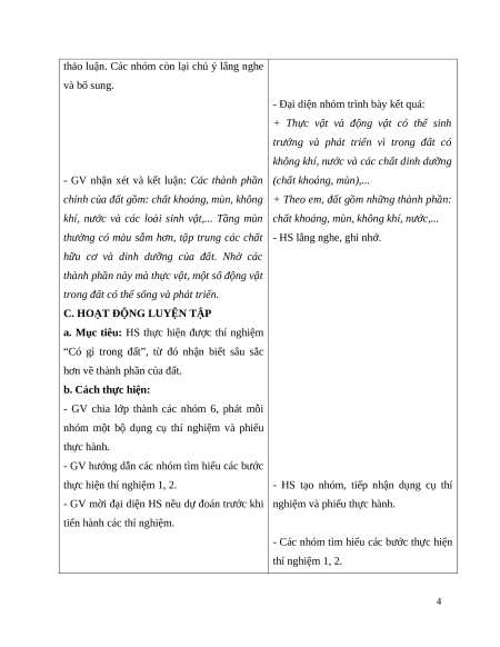 - GV nhận xét và kết luận: Các thành phần (chất khoáng, mùn),...