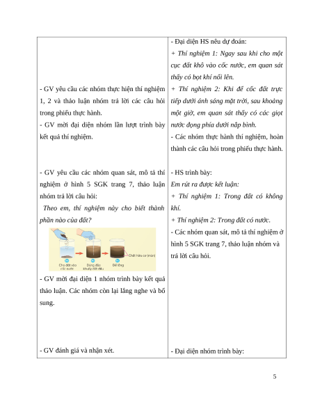 Giáo án Bài 1: Thành phần và vai trò của đất Khoa học lớp 5 Chân trời sáng tạo