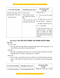 Hoạt động 2: THÔNG TIN VÀ QUYẾT ĐỊNH Mục tiêu: - Yêu cầu cần đạt.
