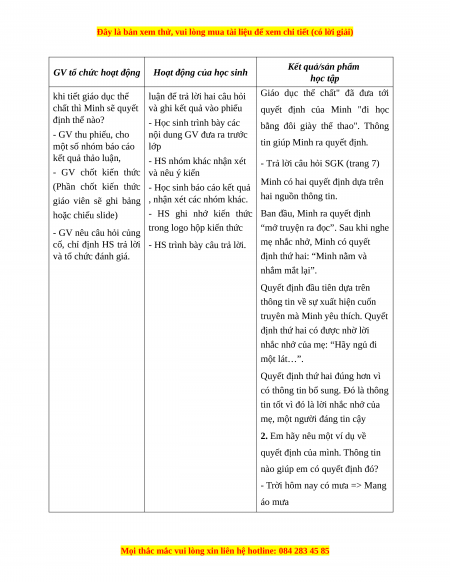 Hoạt động của học sinh học tập khi tiết giáo dục thể