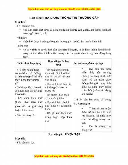Hoạt động 4: BA DẠNG THÔNG TIN THƯỜNG GẶP