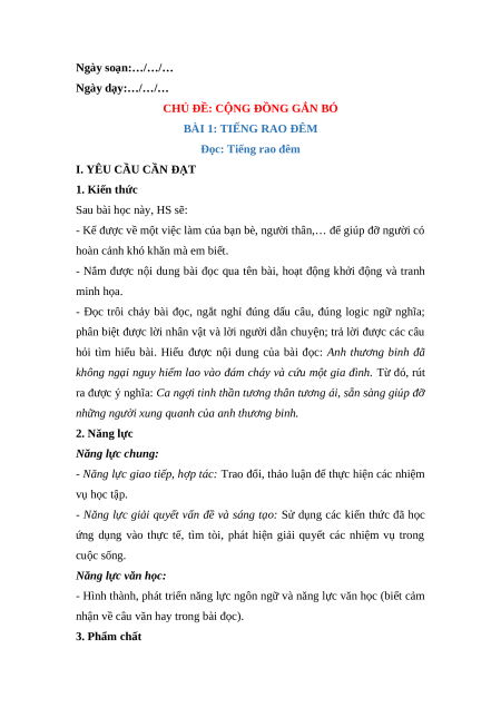 Giáo án Bài 1: Tiếng rao đêm Tiếng Việt lớp 5 Chân trời sáng tạo