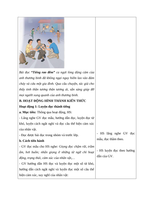 - Đọc được bài đọc trong nhóm và trước lớp. - HS lắng nghe GV đọc b. Cách tiến hành mẫu, đọc thầm theo.