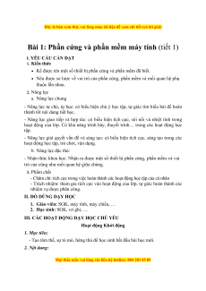 Bài 1: Phần cứng và phần mềm máy tính (tiết 1) I. YÊU CẦU CẦN ĐẠT 1. Kiến thức