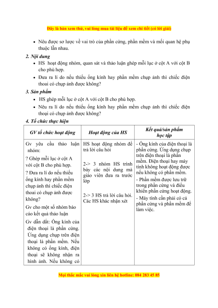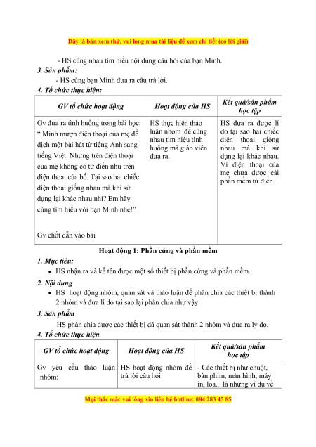 Đây là bản xem thử, vui lòng mua tài liệu để xem chi tiết (có lời giải) Kết quả/sản phẩm GV tổ chức hoạt động Hoạt động của HS học tập ? Quan sát các hình ảnh