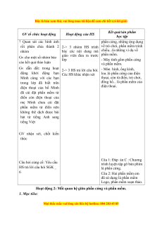 - HS cùng bạn Minh đưa ra câu trả lời. 4. Tổ chức thực hiện: Kết quả/sản phẩm GV tổ chức hoạt động Hoạt động của HS học tập