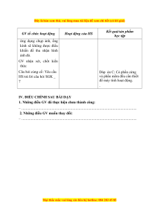 thoại có chụp ảnh được không? 4. Tổ chức thực hiện Kết quả/sản phẩm GV tổ chức hoạt động Hoạt động của HS học tập