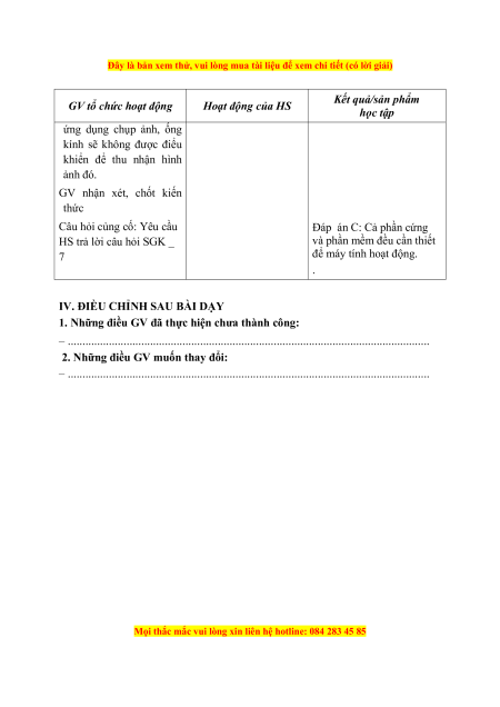 IV. ĐIỀU CHỈNH SAU BÀI DẠY