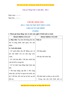 Giáo án Tiếng Việt 5 Cánh diều – Bài 1 Ngày soạn:…/…/… Ngày dạy:…/…/… CHỦ ĐỀ: MĂNG NON