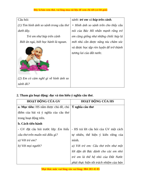 Giáo án Bài 1: Trẻ em như búp trên cành Tiếng Việt lớp 5 Cánh diều