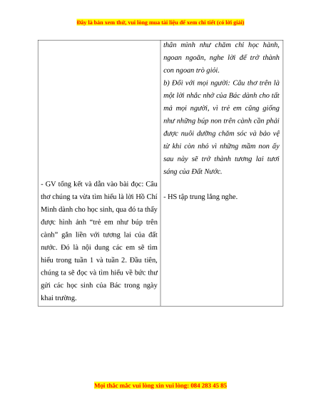 - Bồi dưỡng phẩm chất yêu quý, tôn trọng Bác Hồ.