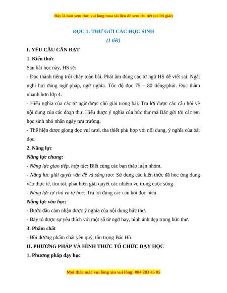 ĐỌC 1: THƯ GỬI CÁC HỌC SINH (1 tiết)