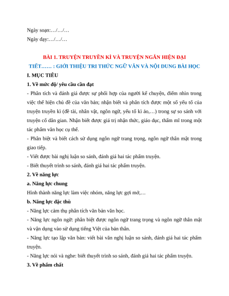 BÀI 1. TRUYỆN TRUYỀN KÌ VÀ TRUYỆN NGẮN HIỆN ĐẠI