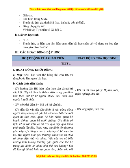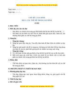 BÀI 1: CÁC THẾ HỆ TRONG GIA ĐÌNH (2 tiết) I. MỤC TIÊU
