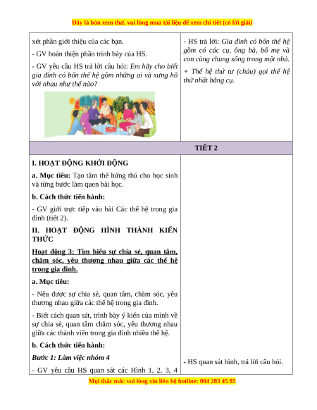 - Nêu được các thành viên trong gia đình nhiều thế hệ (hai thế hệ, ba thế hệ,…)