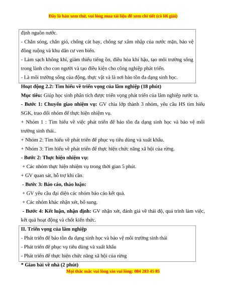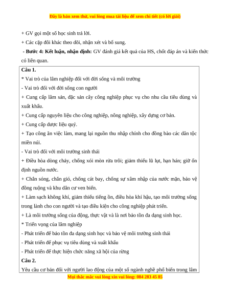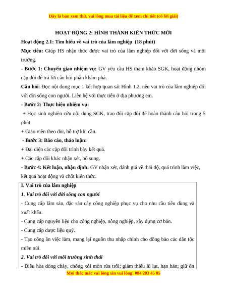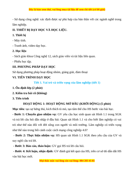 Tiết 1. Vai trò và triển vọng của lâm nghiệp (tiết 1)