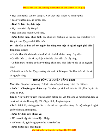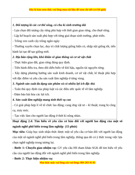 - Nêu được những yêu cầu cơ bản đối với người lao động của một số ngành nghề phổ biến trong lâm nghiệp.